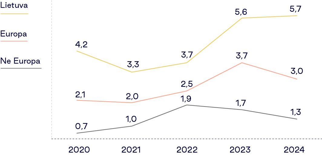 Pajamų pasiskirstymas pagal veiklos geografiją (mln. Eur)