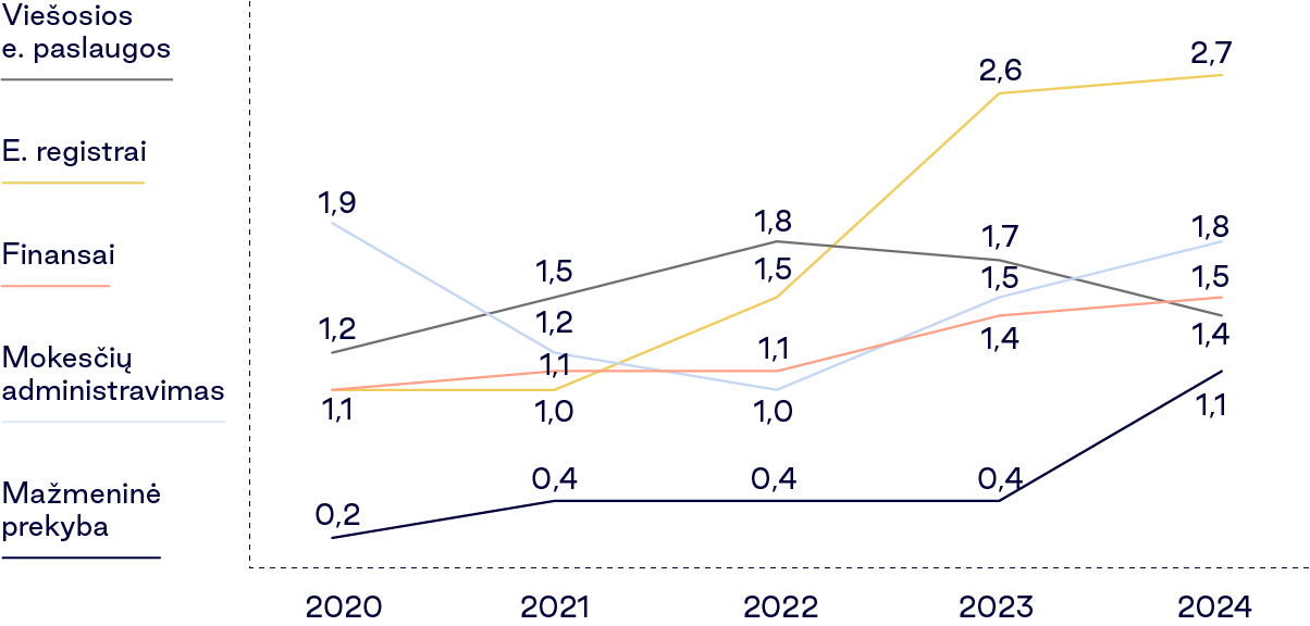 3Spartus augimas e. registrų ir viešųjų e. paslaugų srityse, paremtas nuosavybine programine įranga ir konsultavimo paslaugomis.